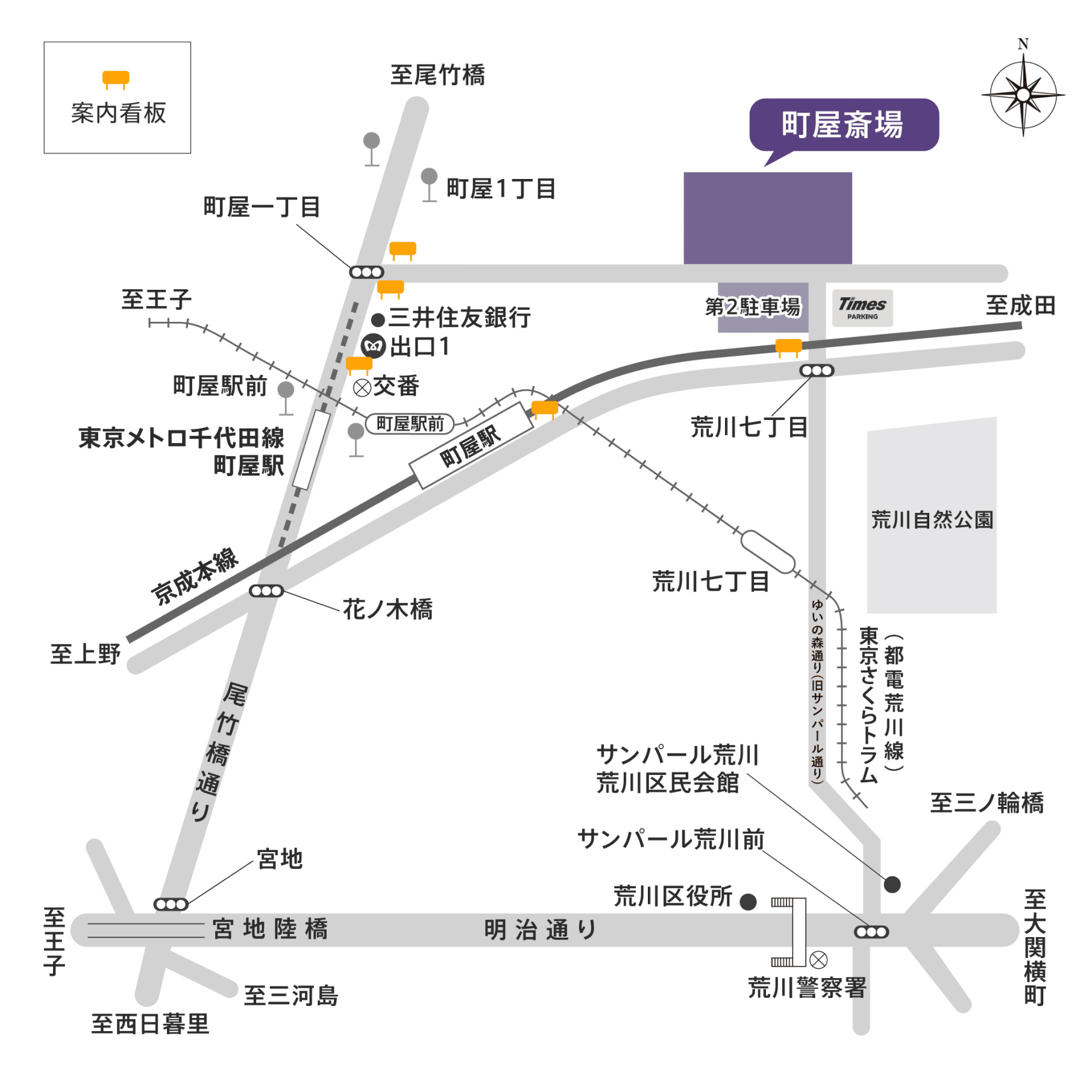 町屋斎場への道順案内
