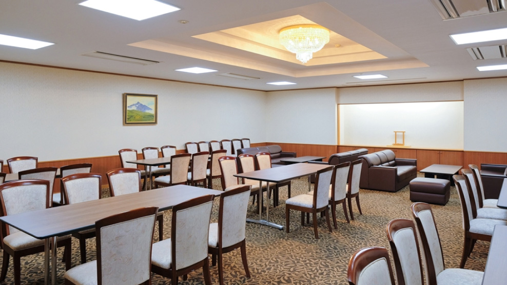 モダンで落ち着きがあるゆったりとした空間で、家族葬から中規模葬儀までのさまざまな人数に対応可能です。少人数の場合は、式からお食事までを一つの式場内で行うことができます。